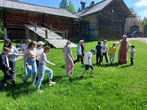 14 июня ребята посетили музей "Малые Карелы", где радушная хозяйка Дарьюшка рассказала об устройстве северного дома и жизни крестьянской семьи, о разных хозяйственных постройках, играла с детьми в деревенские игры.