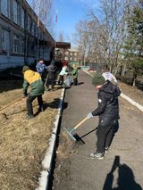Сегодня, 9 апреля, учащиеся начальных классов, педагоги и родители дружно вышли на уборку школьного двора